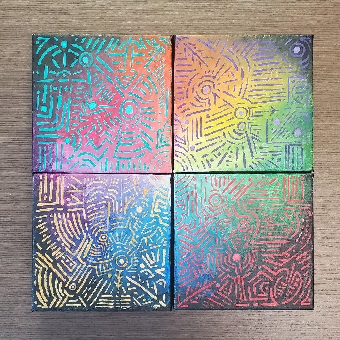 “Prismatic Cypher“ Acrylic on 4 6”x6” Canvases