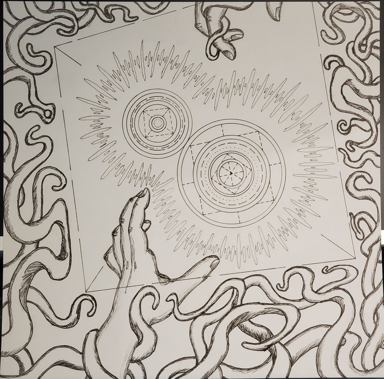 I enjoy jumping headfirst into different kinds of art and trying different styles and mediums out. I typically lean into traditional art and mainly do black and white pen art, but I also love realistic flower and abstract paintings. I basically go wherever my whims take me, so I don’t entirely have an art style yet, but I think it’s starting to form. It’s really funny, because when I was younger, I absolutely hated abstract art, but now I do so much of it. I like doing abstract geometric, which is really intricate and technical, but I also like doing more scribbly ones which are based entirely on how I’m feeling. I do a bit of digital art as well. I can translate sketches and designs on paper into digital versions and I use Fresco and Illustrator fairly well. I also have some experience animating, but you won’t see a lot of that here.